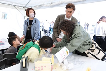 子ども向けのオリジナルライセンスづくりや制服着用体験など、ワクワクするプログラムに加えて、時速約5kmの衝突体験ではシートベルトの重要性をリアルに実感できます。