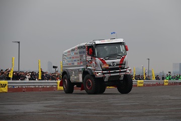 HINOダカール参戦車を展示&デモラン実施!迫力の走りを披露