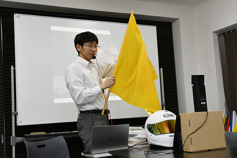 「これまで感染拡大防止策の一環としてライセンス講習会を延期や中止としてきましたが、この度、JAFさんの方から非対面で開催していいことになりましたので、開催させていただきました。また、ZOOMやTEAMSなどのツールがコロナ禍において当たり前の存在になってきてますし、それを活用して講習会を行うことは時代的にも求められていることだと捉えてますので、この機会にということでチャレンジさせていただきました」。