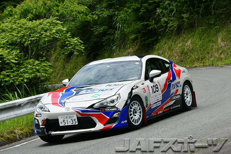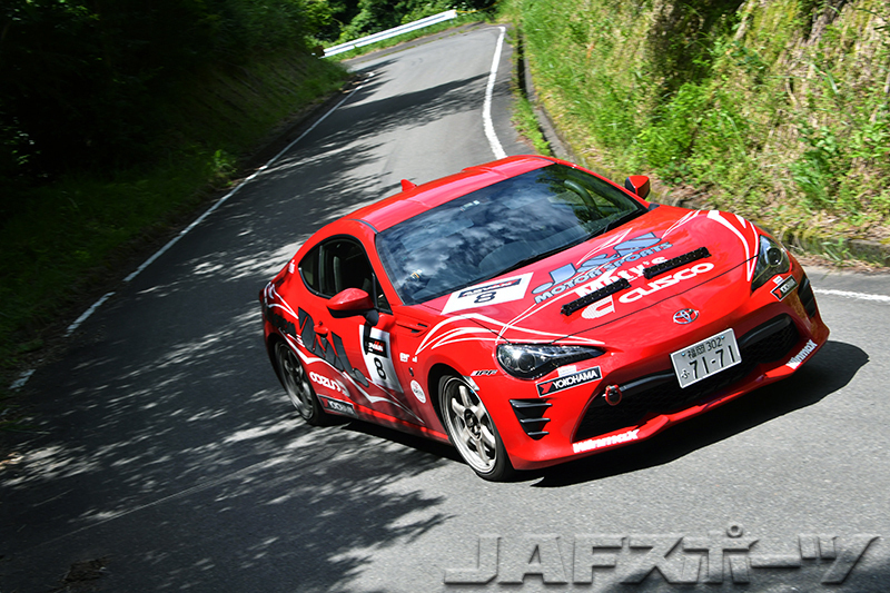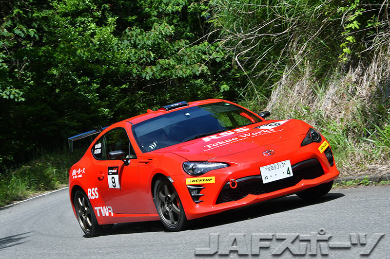 RH2クラスは7台が参加した。本命は、開幕戦でクラス優勝とともに総合でもベストタイムをさらうという快挙を達成した窪啓嗣/藤口裕介組の86だ。そのスピードは今回も健在で、4本のSSを終えたセクション1の時点で、早くも2番手のAKIRA/竹原静香組に22.6秒のマージンを作る。ラリー後半もペースを緩めなかった窪組は8本のSSすべてでベストタイムをマーク。SS5でAKIRA組が大きく遅れたこともあって、最終的には1分以上の大差をつけてクラス2連勝を飾った。しかし、総合ベストは今回はRH1クラスの津野組に譲って、3位でフィニッシュとなった。