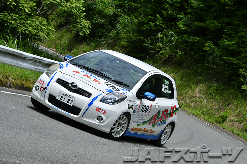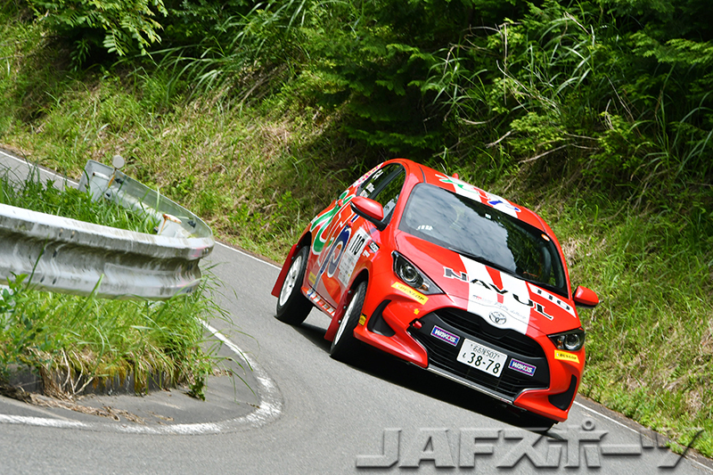 一方、RH3クラスはRH1クラスに劣らぬ接戦となった。まずラリーをリードしたのは今季初参戦となったSADAKEN/久木野理恵組。SS1、SS2と連取し、全日本でも、その速さが注目を集めているヤリスのスピードを見せつける。しかしSADAKEN組は続くSS3でまさかのリタイヤ。これでラリーは開幕戦の覇者である豊田智孝/松葉謙介組と、その開幕戦で終盤まで首位を独走していながらリタイヤに終わった江藤享平/大西慧組によるマッチレースとなる。