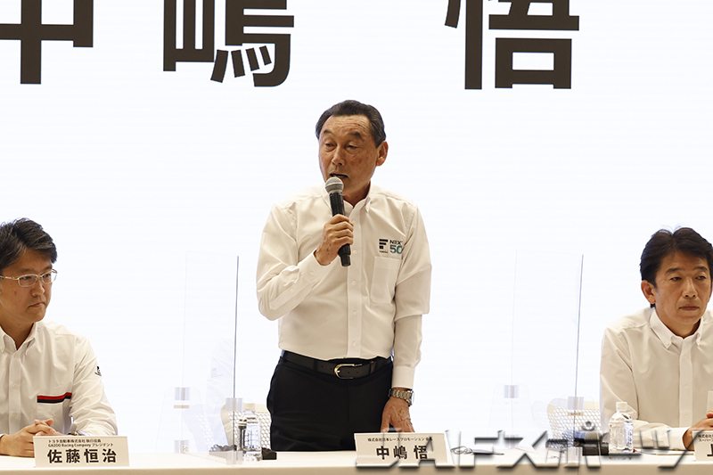記者発表会には、トヨタ自動車株式会社 執行役員 GAZOO Racing Company Presidentの佐藤恒治氏と本田技研工業株式会社 執行職 ブランド・コミュニケーション本部 本部長の渡辺康治氏も、中島悟氏、上野氏とともに登壇した。