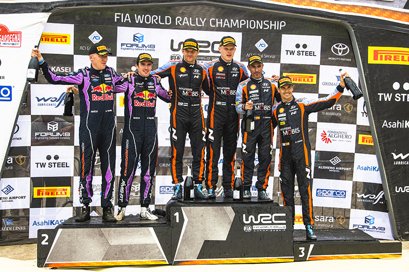 第5戦の優勝は、HYUNDAI SHELL MOBIS WORLD RALLY TEAM(ヒョンデ)でi20N Rally1を駆るティエリー・ヌービル/マルティン・ヤルヴェオヤ組。9つのSSを制して、待望の今季初優勝を果たした。M-SPORT FORD WORLD RALLY TEAMでプーマRally1のステアリングを握るクレイグ・ブリーン/ポール・ネーグル組が2位、ヒョンデのダニ・ソルド/カンディド・カレーラ組は前戦と同じ3位で表彰台に上った。