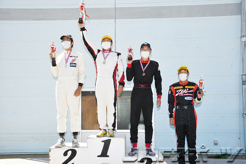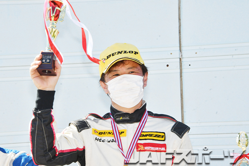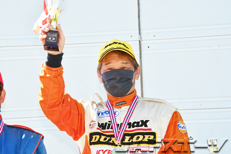「スーパードライタイヤを履いた横内さんSW20のターボパワーには勝てないと思っていたので、今日は横内さんのミスに助けられての勝利ですね。僕は安全策を採ってドライタイヤで行きましたが、スーパードライでチャレンジしても良かったかも」と苦笑の森選手。