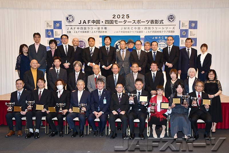 中国地区と四国地区、瀬戸内海を挟んで隣接する2地区を舞台にチャンピオン争いが繰り広げられるJAF中四国ラリー選手権とJMRC中国・四国ラリーシリーズ。2022シーズンの各クラスランキング上位クルーを称え、シーズンを締めくくる表彰式が去る2023年2月25日に開催された。