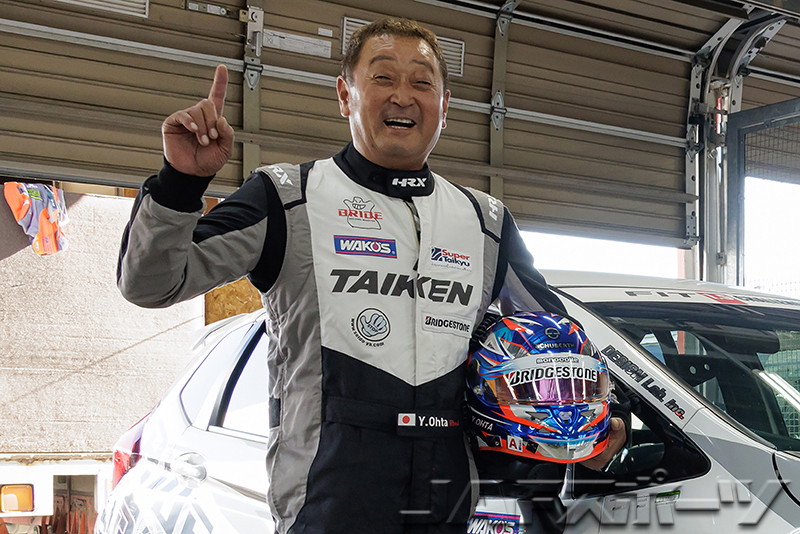 一方のオオタ選手だが、なかなかタイムが上がらず。計測3周目で決めるも、それでも尾藤選手のみならず、中村義彦選手のタイムにも及ばず、3番手タイム。だが、「リヤに硬いタイヤ履いていたからね、決勝に向けて」と、焦る様子はまったくなさそうだ。
