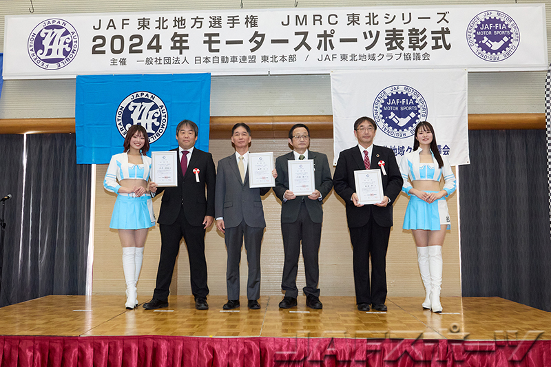 表彰は、2024年JAF全日本スーパーフォーミュラ・ライツ選手権のドライバーランキングで2位を獲得した、小林利徠斗選手から始まった。そしてJAF東北ダートトライアル選手権/JMRC東北ダートトライアル チャンピオンシリーズ、JAF菅生サーキットトライアル選手権/JMRC菅生サーキットトライアルシリーズ、JAF東北ジムカーナ選手権、JMRC東北ジムカーナシリーズ、JMRC東北ラリーシリーズ、JMRC東北ロードスターカップの順で受賞者たちに賞典が授与された。