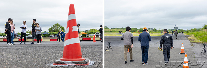 新千歳は一部縁石区間があるフルパイロンである一方、十勝はミニサーキットを利用する。全日本も開催されるスナガワは、パイロンとコースの両面を合わせ持つのが特徴だ。また、スナガワはストレートを長くとれることから、レイアウト次第で自由にトップスピードをコントロールできる。ただし、長年の経年劣化などにより路面は非常に粗く、タイヤへの攻撃性も高い。1分半を超えるようなレイアウトでは、後半区間に向けてのタイヤマネジメントも重要になってくるコースだ。