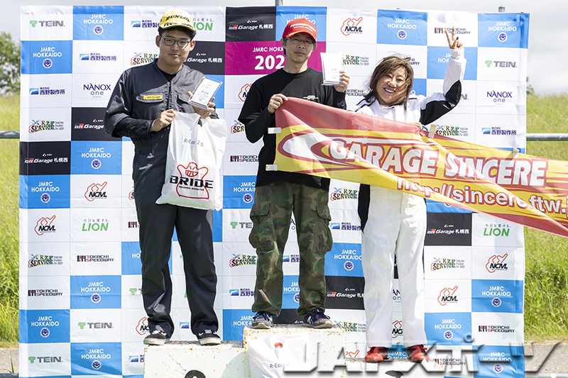 続けて「正直クラス変更してから初の優勝で、前回ダブルミスコースの雪辱もあってとても嬉しいです。以前と比べていろいろな車種がいるので揉まれている感じです。今シーズン残りは次戦で連勝決めてから、新千歳に戻りたいですね!」と喜び、チャンピオンを賭けた後半戦の展望を語った。