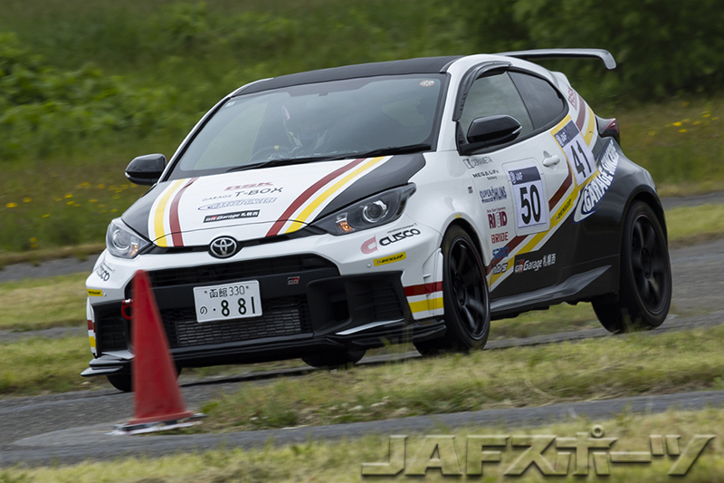 H-BC2クラスは4WDのAT車両を含む、N・SA・B・SAX・SC車両が対象となる。ガレージシンシアを営み、今季は進化型GRヤリスのセットアップに着手した小野寺俊選手が、オーナーの木村司選手とダブルエントリーしている。昨季までは、青いZD8型BRZで鮮やかなパイロンターンを見せる印象が強かった小野寺選手だが、今季はAWDの力強い走りに一変した。