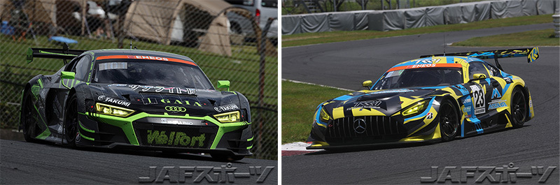中盤にはTKRI松永建設AMG GT3が快調に走りトップに浮上、2番手まで順位を挽回したDENSO LEXUS RC F GT3とは31秒もの差をつけ、悠々トップで快調に走行を続けていた。しかし5時間のタイムアップまで残り3分となったジェットコースターストレートエンドで複数のバックマーカーを追い抜こうとして、ST-5Rクラスのトップを走行していた88号車 村上モータースMAZDAロードスター(村上博幸/太田達也/黒沼聖那/吉田綜一郎組)と接触し、2台はコースアウト。