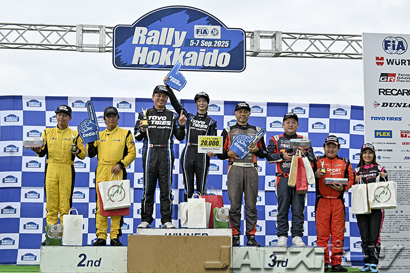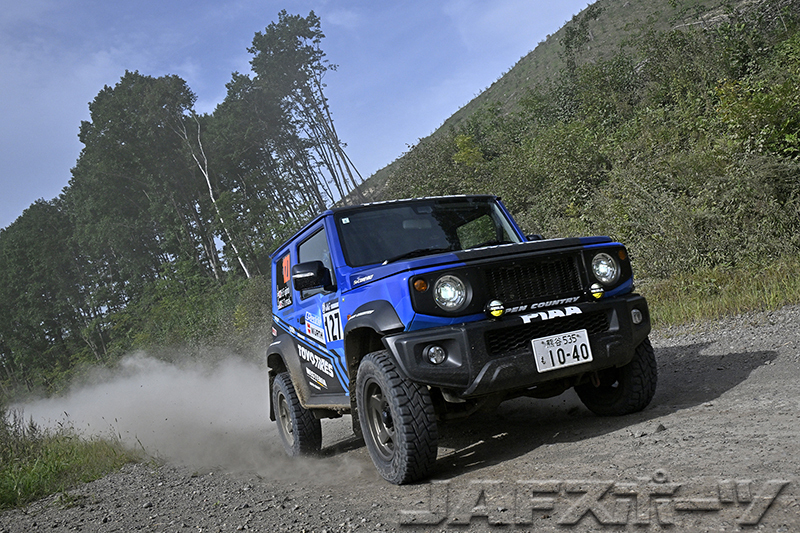 一方、白熱したのは2位争いで、ワイドトレッド化したジムニーを持ち込んだ和田智弘/伊神敬太郎組がSS10で奈良/花田組をかわして2位を奪取すると、僅か1.3秒のリードで臨んだ最終のSS12でも奈良/花田組を抑えてポジションキープに成功。昨季の3位に続く二季連続の表彰台を獲得した。