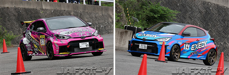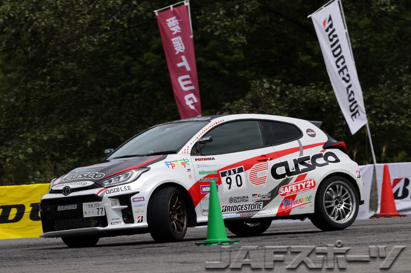 2位には、第1ヒートのパイロンペナルティを第2ヒートでリカバリーした松本敏選手(トヨタ・GRヤリス)が入賞。同じく第1ヒートでパイロンペナルティが加算され、第2ヒートで挽回した堀隆成選手(トヨタ・GRヤリス)が3位だった。