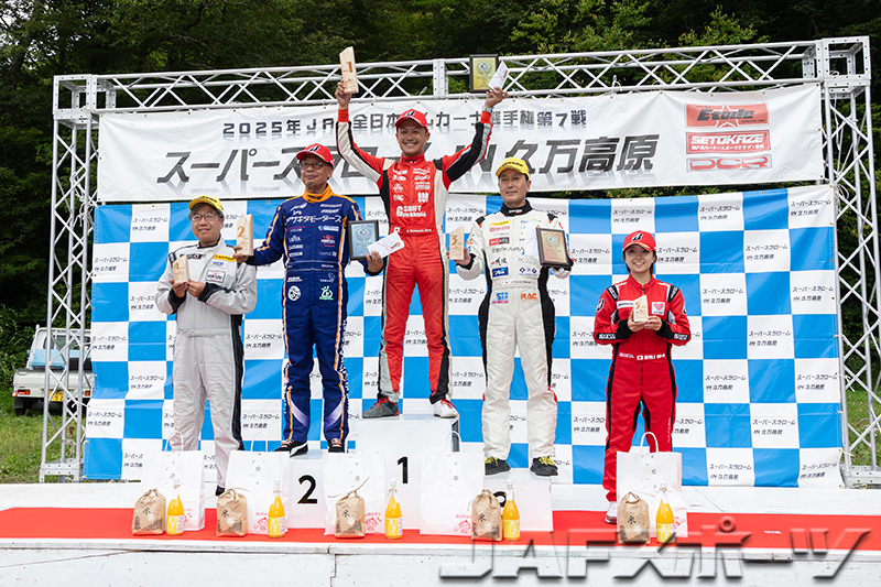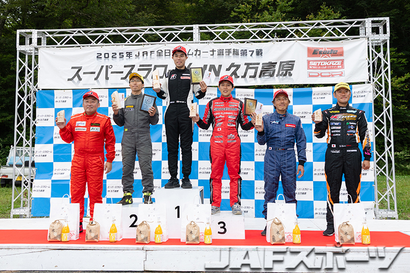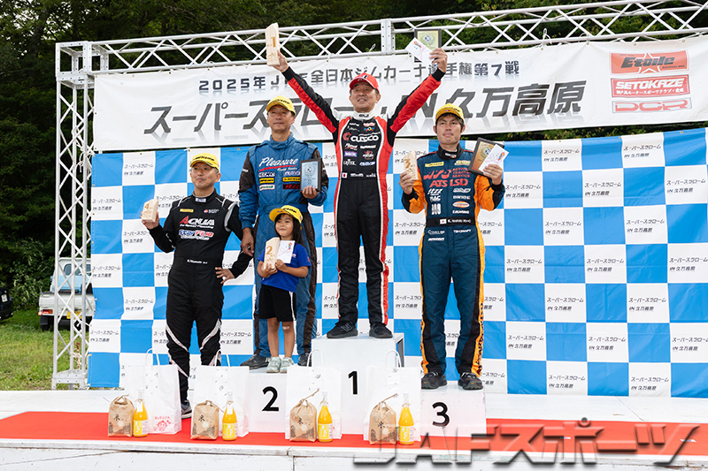 2位には第2ヒートで0.027秒差に迫った大橋渡選手(スバル・インプレッサWRX)が、3位には第1ヒートでのミスコースをリカバリーした一色健太郎選手(トヨタ・GRヤリス)がそれぞれ入賞した。