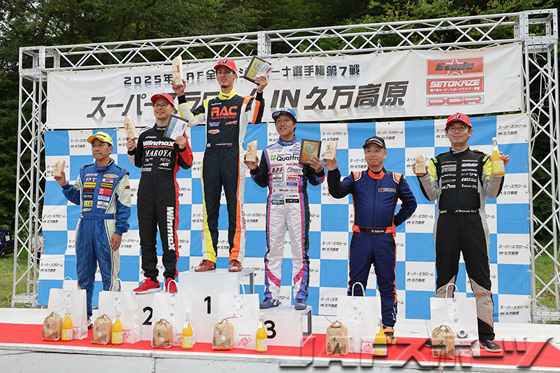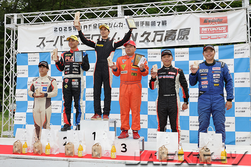 2位には、「川北選手とはタイム差がありましたが、自分の中ではやり切ることができたと思います」という安仲慶祐選手(マツダ・ロードスターRF)が、両ヒートで2番手タイムをたたき出し、自信初となる表彰台をつかんだ。3位には、第1ヒートトップの野島孝宏選手(トヨタ・GR86)が入賞した。ランキング首位のユウ選手は今回、第1ヒートはミスコース、第2ヒートはパイロンペナルティで、痛恨のノーポイントに終わっている。