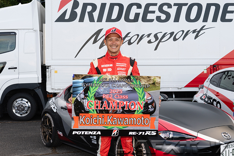 PE2クラスは、第1ヒートで逆転チャンピオンを狙う髙屋隆一選手(スバル・BRZ)がベストタイムをマークするが、第1ヒートはパイロンペナルティに終わり幻のベストタイムとなった河本晃一選手(マツダ・ロードスターRF)が第2ヒートでクラス唯一となる1分17秒台のタイムをたたき出し逆転。「昨日の公開練習はマシントラブルにより走ることができませんでしたが、いろいろな方の協力により車両を修復して走ることができました」と河本選手。今季5勝目を挙げ、最終戦を待たずしてシリーズチャンピオンを確定させた。
