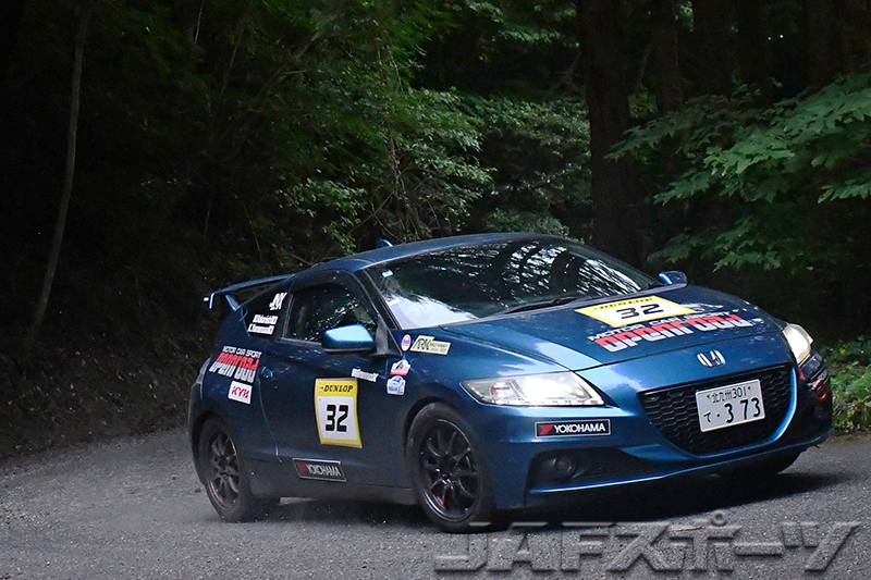 徳尾/柴田組から2.4秒のビハインドを背負い、最終SSでの逆転に賭けた納富/出雲正朗組は、「ブラインドコーナーで、ちょっとライトが足りないと思ったけど突っ込んでいったら砂利に乗ってしまって、側溝に右フロントタイヤを落としてしまいました」と、足回りを損傷。しかし手負いのCR-Zを何とかフィニッシュまで運び込んで、川中天兵/河嶋康史組に先を越されたものの3位を確保。トップ3の一角は射止めて、貴重な12ポイントを上乗せした。