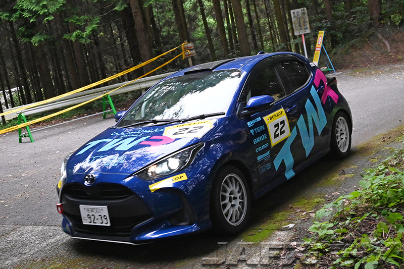 天候について、ラリー当日は雨が降らなかったが前日の夕方に雨がパラついたため、一部の路面は乾き切らないままラリーはスタート。特にSAYOHIME Northは数カ所、苔が生えた箇所もあって難しい路面も待ち受けたが、今季の地区戦は開幕から三戦連続でウェットのラリーが続いたため、待ち焦がれたドライターマックを走れたことを各クルーとも歓迎していた。