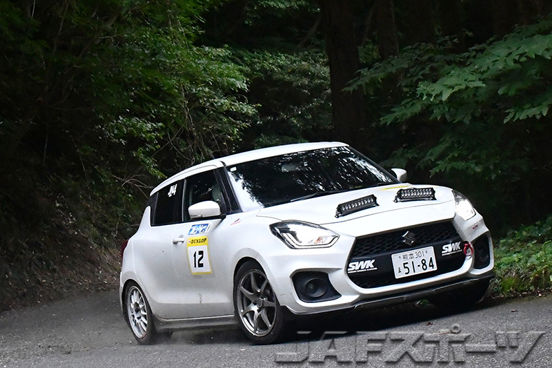 今回のラリーでは有川/川野想一朗組が先行し、SS1で三苫/春日美知子組を5秒差で下すベストをマークする。「ナイトSSは走ったことがなくて三苫さんには勝てないだろう、と踏んでいたので、明るいうちにどれだけマージンをつくれるかの勝負だと思っていました」と判断した有川/川野組は、SS2でも三苫/春日組に9.1秒差をつける連続ベストをマークして、目論見どおりのラリー展開に持ち込む。