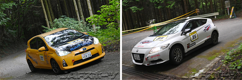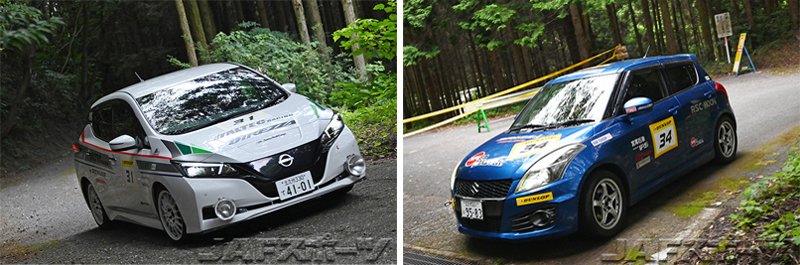 第2戦でRH-6クラスからRH-5クラスに転向してきた、ホンダCR-Zをドライブする全日本ドライバーの中西昌人選手。今回のラリーはコ・ドライバーに豊田智孝選手を迎え、転向3戦目にして今季初優勝を果たし、「今回は無心で走りました」と振り返った中西選手は久々の優勝に笑顔を見せた。三連勝を狙った日産・リーフを駆る常慶明秀/三谷優雅組はSS3以降、中西/豊田組とほぼ互角のタイムを並べたが序盤2本でのタイムロスが大きく、今回のラリーは2位に甘んじた。