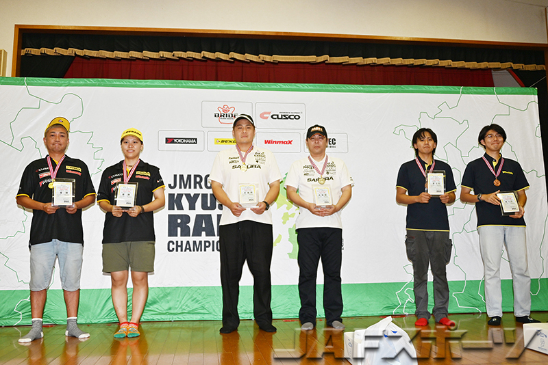 これまで2日間で行っていたラリーをワンデー開催としたのも今季の特徴で、酷暑がピークに達する昼前後の時間帯にレッキを設定。気温も下がり始める15時スタートとして、参戦クルーやオフィシャルの体力面での負担軽減を図った。最終のSS5はライト点灯が必須のナイトステージとなったがコンパクトなルート設定もあって、20時前後には各クルーともフィニッシュを果たすというテンポの良いラリーとなった。