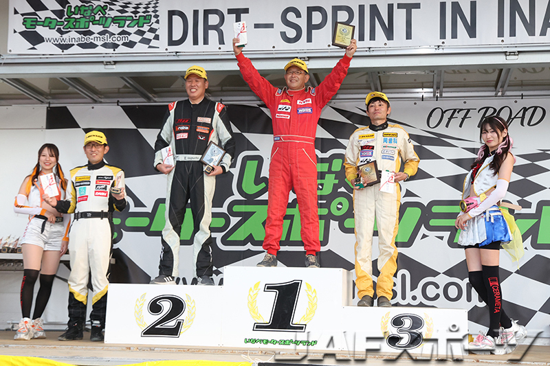 今シーズンの開幕戦以来、今年2回目の全日本開催となるいなべモータースポーツランドは、路面全体にしっかりと転圧がかけられ、開幕戦よりもフラットな路面コンディションに。前日から決勝日の朝方まで降った雨の影響により、第1ヒートが始まる前の路面は泥が覆うウェットコンディションだったが、終日強い日差しが照り続けたことにより、徐々に乾いていく状況に。各クラスとも、路面が完全に乾いた第2ヒート勝負となった。