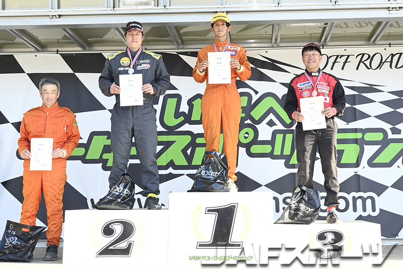 大幅にタイムを詰めて優勝を果たした猪上選手は、「前回の第4戦からダートトライアルに参戦してます。今回はきっちりアクセルを踏んで走ることができたので、すごく楽しい一日でした(笑)」と、ダートラ参戦二戦目の快挙を笑顔で振り返った。そして、優勝は逃してしまってものの、2位の加藤選手がチャンピオンを獲得した。