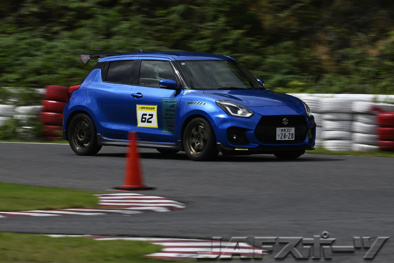 「昨年はタイトルを逃して連覇が途切れて悔しかったのですが、今年は奪回できてうれしいです。ただ、シリーズの前半は良かったのですが、後半になってからはなぜか調子を落としてます」という内田選手の第1ヒートは、4番手タイムと出遅れる。トップタイムをマークしたのはシリーズ2番手、第4戦で今季初優勝を飾った池澤亮太選手。このクラスでは少数派となってしまったFF車のスズキ・スイフトスポーツを駆り、クラス唯一の1分13秒台をマークする。
