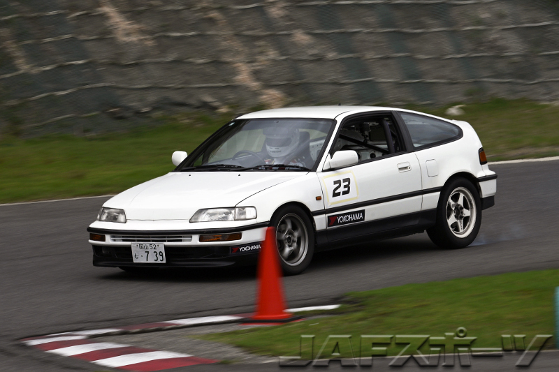 まず1分14秒289のトップタイムをマークしたのは、シリーズ4番手のマツダ・RX-7を駆る影山幸輝選手。2番手には、シリーズでも2番手につけている、マツダ・ロードスターの乗本佳樹選手でタイムは1分14秒313。そして3番手にはポイントリーダー、ホンダ・CR-XのTARO選手が1分14秒451と、上位陣は0.1秒刻みで第1ヒートを折り返す。