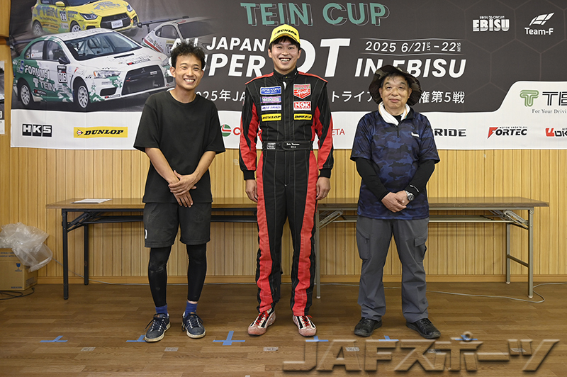 勝利を掴み取った2ndの走りについて、「ドライタイヤが思いのほか機能してくれたらしく、自分では全く手応えなかったのですが、周りの人たちがそう言ってたので、そうなのかな? と(笑)。こういったところがエビスの路面の難しさと感じました」と、釈然としない様子の古川選手だが、ポイントリーダーは堅守。混沌としていた王座争いは古川選手と越川選手に絞られ、最終戦で決着となった。