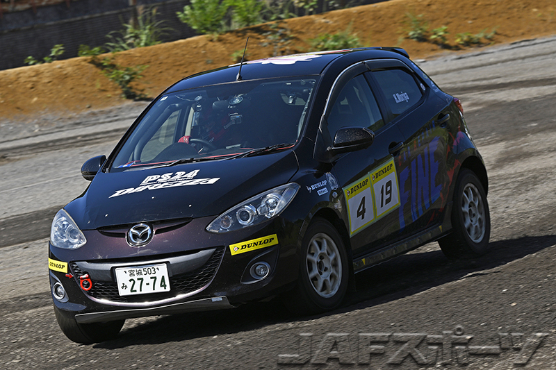 「ダートトライアルは練習会で1回走ったことがありますが、競技会は初めてです。1本目はタイムを残すため思い切り走って、2本目はダート路面で試したいことがあったのでブレーキングなどの質を変えて走ってみました」と、2ndでのタイムダウンの理由を明かした。それでも1stのタイムを守り切り、ダートラデビューでトップタイムを奪った。