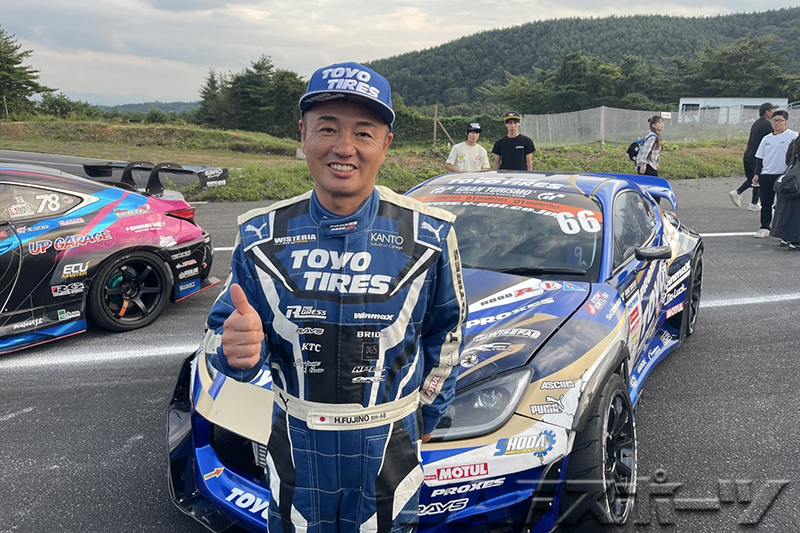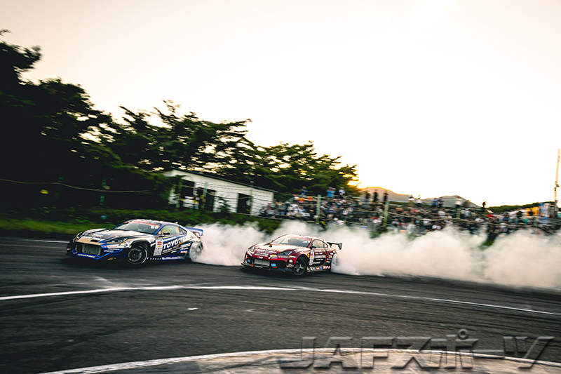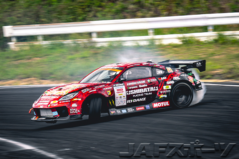 前戦の筑波ラウンドから3か月、後半戦のD1グランプリは昨年同様にエビスラウンドを舞台に開催された。4戦中3勝でランキングトップの目桑宏次郎選手(VALINO TEAM G-Meister)が第5戦を欠場したことで、シリーズ争いに波乱が起きるかもしれないといった憶測が飛ぶ中、コースのゾーン配置が昨年から変わり選手を悩ませ、金曜日の練習走行からクラッシュの多い波乱含みのラウンド開始となった。また、絶対王者として名高い齋藤太吾選手(FAT FIVE RACING)が今季初参戦し、昨年のチャンピオン中村直樹選手(TEAM VALINO × N-STYLE)が今ラウンドからGR86にマシンチェンジしたことも大きな話題となっていた。