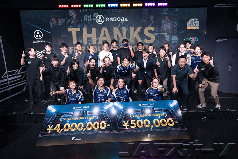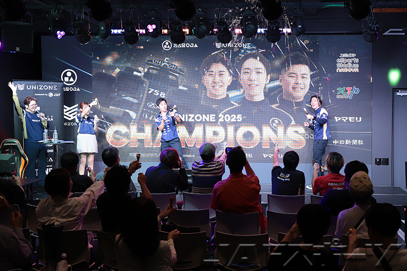 JAF公認の国内Eモータースポーツリーグとして、2月に開幕となったUNIZONE。第2戦以降は各チームの拠点からオンラインでシミュレーターをつないで競技を行うHOME&HOME形式で開催され、激戦が繰り広げられてきた。各拠点にはチームを応援するファンが集い、大会を重ねるごとにその熱気が増していくほどに。
