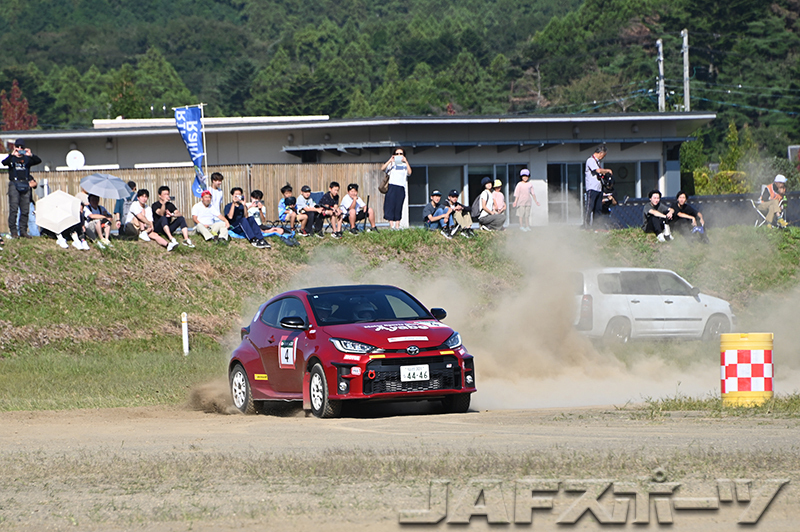 通常のドライ用ラリータイヤに履き替えた午後でさらなるタイムアップを狙ったが、「クルマが思ったより前に進んでくれなくて失敗でした」と、森郷でライバルに遅れをとり、4位に留まった。「浜田の2本目が1本目の走行で土が掻き出されてしまったこともあって、思ったほどはタイムアップできなかったのも痛かったです」と、悔やまれるラリーとなった。