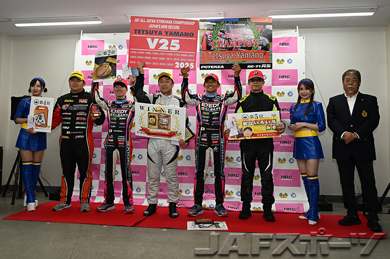 2位には、山野選手とダブルエントリーの野島俊哉選手が入賞。山野選手は大橋選手を上回る3位になり、「レースと日程が重なったりクラス不成立の大会が多かった今年は、いつもの年よりも大変なシーズンになりましたが、最後はしっかり大橋選手より上位でフィニッシュすることができました」と、9年連続25回目のチャンピオンを確定させた。