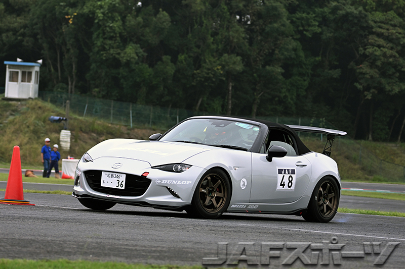 0.199秒差の2位には「最後のターンでリヤを抑えるのが少し鈍くなってしまい、それがタイム差になったんでしょうね。悔しいです」という古田公保選手(マツダ・ロードスター)が入賞。3位には、すでに今シーズンのチャンピオン獲得を確定させている藤井裕斗選手(マツダ・ロードスター)が入った。