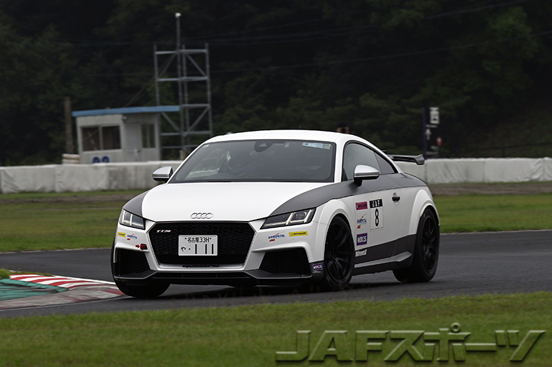チャンピオン候補がアルピーヌ・A110Rを駆る大橋政哉選手と山野哲也選手に絞られたPE1クラスは、第2ヒートで先頭ゼッケンの山野選手がベストタイムを更新してくるが、ハーフウェット路面の第1ヒートを制した深川敬暢選手(アウディ・TT RS)がドライ路面の第2ヒートでもベストタイムを更新。「アルピーヌ・A110に勝つため、テスラやアウディを乗り継いできました。やっと、念願を果たせました」という深川選手が、待望のPE1クラス初優勝を飾った。