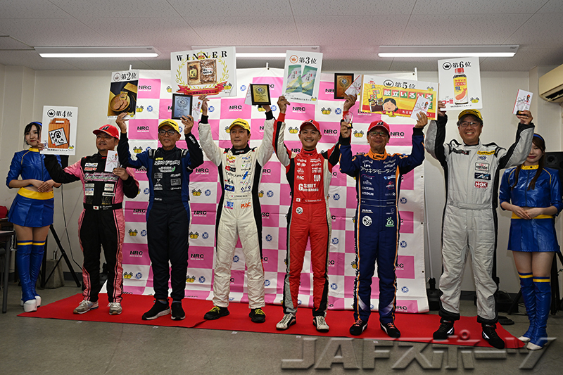ベストタイム更新ラッシュとなった第2ヒートは、まずは西野洋平選手(トヨタ・GR86)が1分17秒792のタイムでベストタイムを更新。その後、西野選手のタイムがなかなか更新されない展開が続く中、第1ヒートトップの川北選手が「細かいミスもあり、想定したタイムより少し遅かったんですけど、大きなミスはなかったと思います」と1分17秒401のタイムでベストタイムを更新。クラス最終走者のユウ選手は、「路面が良くなって、逆転のチャンスはあったんですけど、届かなかったですね」とトップに0.197秒及ばず2位に終わり、川北選手が今季4勝目を獲得。シリーズでは最終戦の逆転劇で川北選手が2年ぶりとなるシリーズチャンピオンを確定させた。2位にユウ選手、3位に西野選手がそれぞれ入賞した。