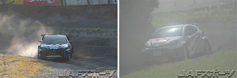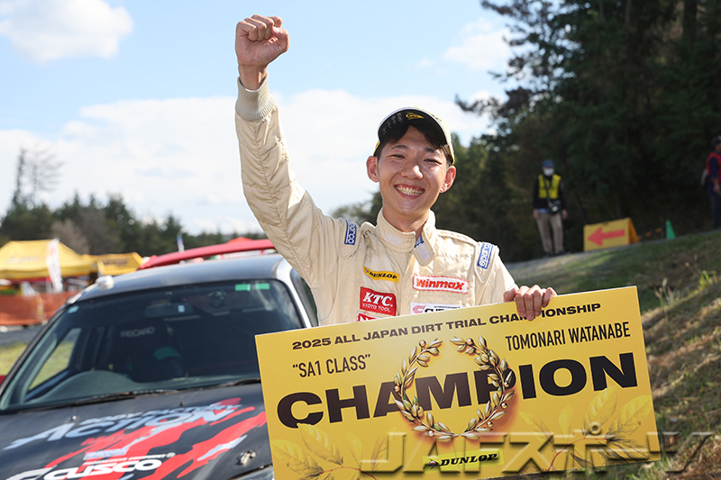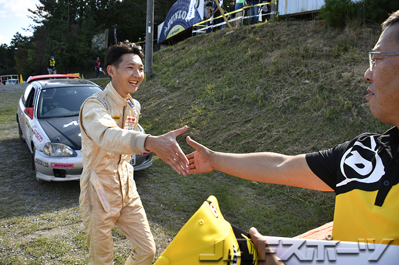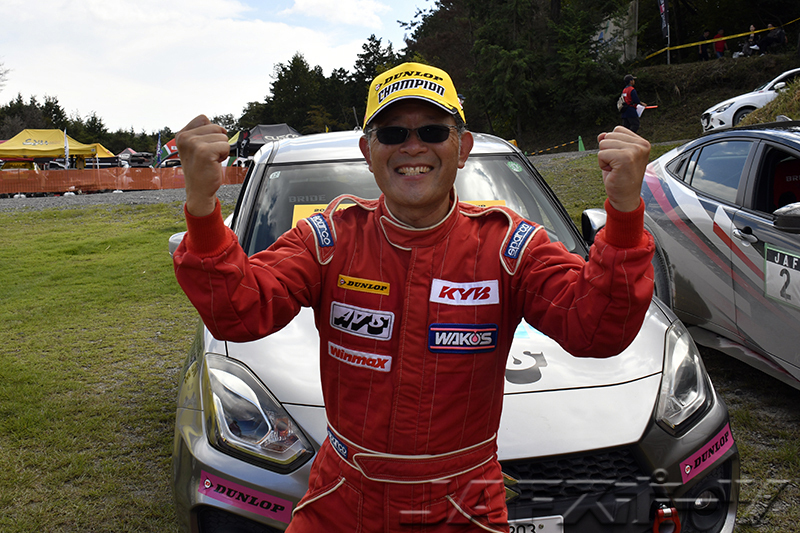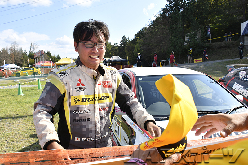 第2ヒートもベストタイムを更新した岸山選手は、この時点で自身初となる全日本チャンピオンを確定、クラス最終走者の細木智矢選手(三菱・ランサーエボリューションⅩ)のゴールを待つ。その細木選手は、中間セクションまでは岸山選手に0.22秒遅れるものの、後半セクションで一気に逆転。岸山選手の2位が確定したためにチャンピオンの可能性はなくなっていたが、ゴール後に「ラクショーです(笑)」と今季2勝目を挙げ、一矢報いる結果を残した。