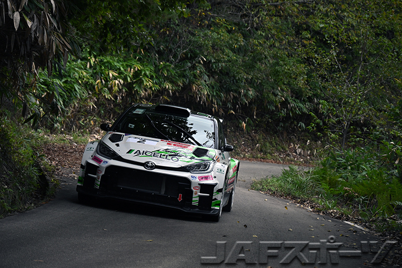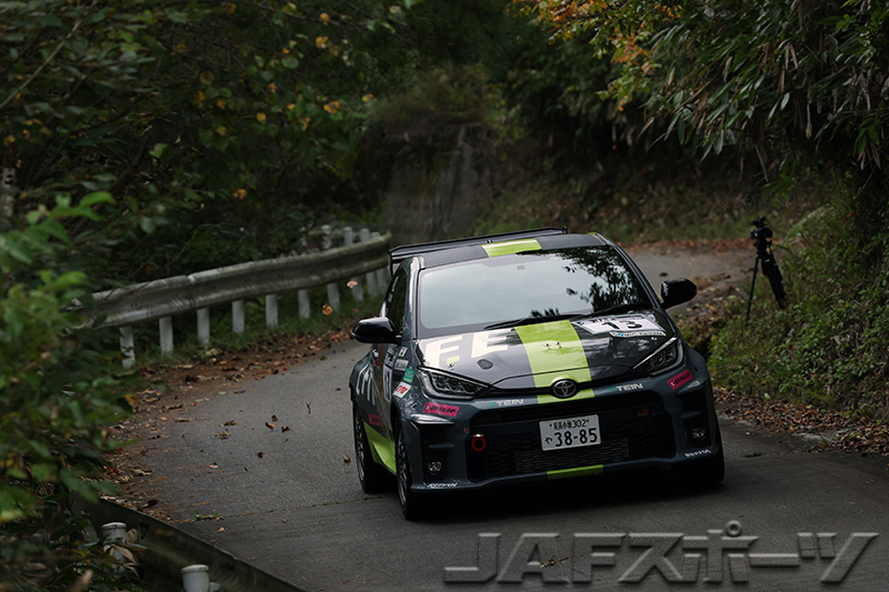 SS8を終えて、2番手に浮上してきた大倉聡/豊田耕司組(トヨタ・GRヤリスDAT)に40秒以上の差をつけていた山田/藤井組は、その後はマージンを活かしてペースをコントロール、トップの座を守ったままフィニッシュし、今季4勝目。シリーズポイントでも今回8位に終わった大竹/橋本組を逆転し、念願のJN-2クラスチャンピオンを獲得した。「雨のステージは危なくて踏み切れませんでしたね。後半スタートになればなるほど、リスクが大きくなるステージでした」という大倉/豊田組が入賞。ラリー終盤まで競り合った3位争いは、SS10で吉原將大/石田裕一組(スバル・WRX STI)を逆転した内藤学武/大高徹也組(トヨタ・GRヤリス)が入賞した。