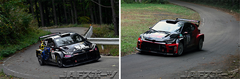 シリーズランキングトップの勝田範彦/保井隆宏組(トヨタ・GRヤリス・ラリー2)を筆頭に、ヘイキ・コバライネン/北川紗衣組(トヨタ・GRヤリス・ラリー2)、奴田原文雄/東駿吾組(トヨタ・GRヤリス・ラリー2)、新井大輝/立久井大輝組(シュコダ・ファビアR5)が、有効得点で10.4点の中にひしめき合うJN-1クラス。