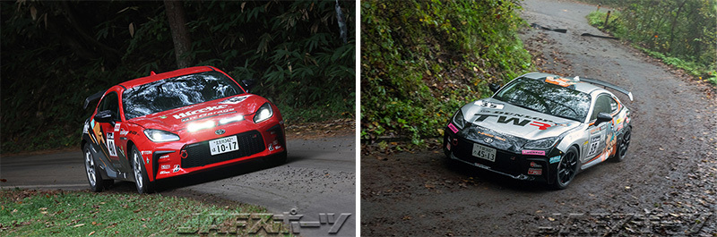 トヨタ・GRヤリスのワンメイクカップで、若手ドライバーと女性ドライバーが出場するTOYOTA GAZOO Racing MORIZO Challenge Cup(MCC)は、SS1で今シーズンのMCCチャンピオン・大竹/橋本組がベストを奪うものの、SS2で右リヤをヒットし、タイヤがリム落ちして大きく順位を落とす。このSS2でベストを奪った最上佳樹/小藤桂一組は、その後も4本のステージでベストを重ね、MCC初優勝を飾った。2位には、ウェット&荒れた路面となったレグ2で、6SS中5本のSSでベストを奪い、一時は1分近くあった2番手との差を大逆転した兼松由奈/山下秀組が入賞。3位には、SS9で2番手に浮上したものの、猛烈な勢いで追い上げてくる兼松/山下組に逆転を許した大竹/橋本組が入賞した。