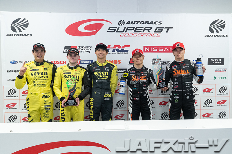 10月17~19日にオートポリスで3時間レースとして開催されたスーパーGTシリーズ第7戦。GT500クラスは今季優勝のないホンダ勢が予選で下位に沈むも、序盤で燃費走行に徹したSTANLEY CIVIC TYPE R-GT(山本尚貴/牧野任祐組)が、中盤にトップを奪って独走態勢を築き圧勝。GT300クラスではトップを走行していたCARGUY FERRARI 296 GT3(ザック・オサリバン/小林利徠斗/澤圭太組)が終盤に燃料補給のためにピットインした隙を狙い、今季より参戦のseven × seven PORSCHE GT3R(ハリー・キング/藤波清斗/近藤翼組)がトップを奪って初優勝を果たした。