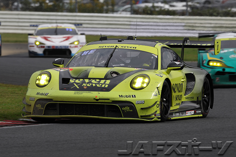 中盤はこの2台がテール・トゥ・ノーズでクラスをリード。56周で元嶋選手が、62周でオサリバン選手が2回目のピットインを済ませると、追い上げていたseven × seven PORSCHE GT3Rのキング選手がトップとなった。そのキング選手が65周でピットインをすると、代わりにトップに立ったVENTENY Lamborghini GT3の小暮選手に対し、FCY中の速度超過によりドライブスルーのペナルティが命じられ66周でペナルティを消化した。