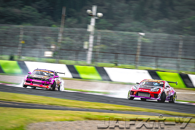 ルーキーの多田康治選手(CUSCO Racing)が連続通過し、玉城詩菜選手(Team TOYO TIRES DRIFT 3)が初通過。前戦は不通過だった星涼樹選手(CUSCO Racing)と中村龍選手(TEAM MORI)も通過したが、前戦2位の田中選手、同じく4位の日比野選手が予選不通過、村上満選手(Repair Create × Result Japan)はウェット路面に苦戦し、松山北斗選手(Team TOYO TIRES DRIFT 2)はチーム入りして初の2戦連続予選不通過となってしまった。