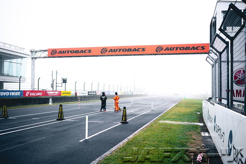 翌日の第8戦もコースレイアウトは同じ。しかし朝から濃霧&ウェット路面で予選はグループ選抜方式となった。これはD1グランプリ特有の予選方法で、天候不良による場合の走行順の有利不利を緩和するために採用されている。しかしすぐに路面はドライになり出走順(クジ引き)が予選の通過を左右する状況に。