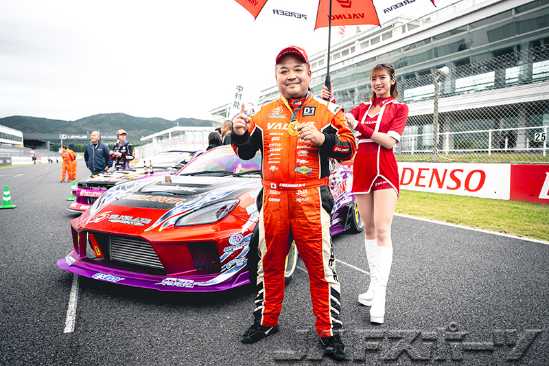 シリーズランキング2位でオートポリスラウンドを迎えた藤野秀之選手(Team TOYO TIRES DRIFT 1)は、チャンピオン獲得への一歩として単走をまず制した(今季初)。これで単走ランキングも4位とランクアップ。ちなみにこの時の進入速度は時速148kmで、予選通過者の中では齋藤太吾選手(FAT FIVE RACING)の時速166kmがダントツだった。