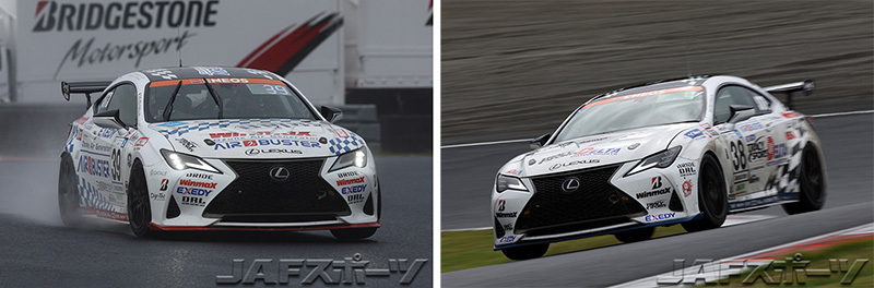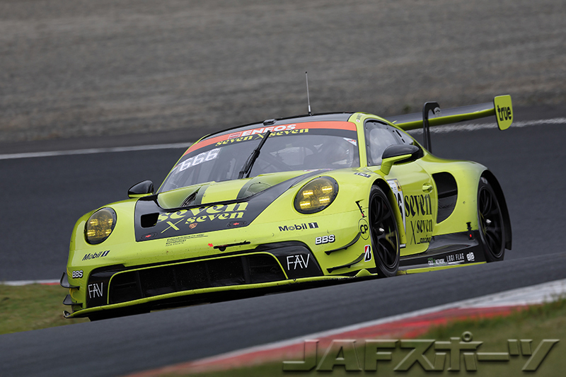 一方、Gr.1の予選では路面が次第にドライコンディションとなり、ST-Xクラスのseven × seven PORSCHE GT3R(BANKCY/渡会太一/藤波清斗組)がポールを獲得。DENSO LEXUS RC F GT3(永井宏明/蒲生尚弥/小林利徠斗/嵯峨宏紀組)が僅差の2番手につけ、上位6台をST-Xクラスが占めた。