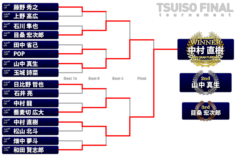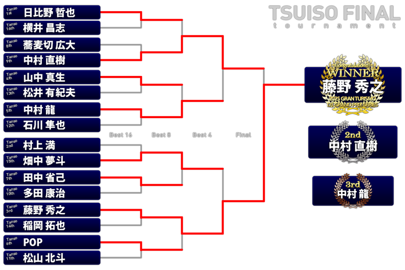 決勝、冷静さを保った藤野選手は平均以上の後追いをしつつDOSS得点もキープ。対する中村選手は後追い点で勝るもののDOSS得点が想像以上に低かった。その結果、奇跡とも思える大逆転で藤野選手はシリーズ制覇確定。2位確定の蕎麦切選手とのポイント差は1という大接戦であった。