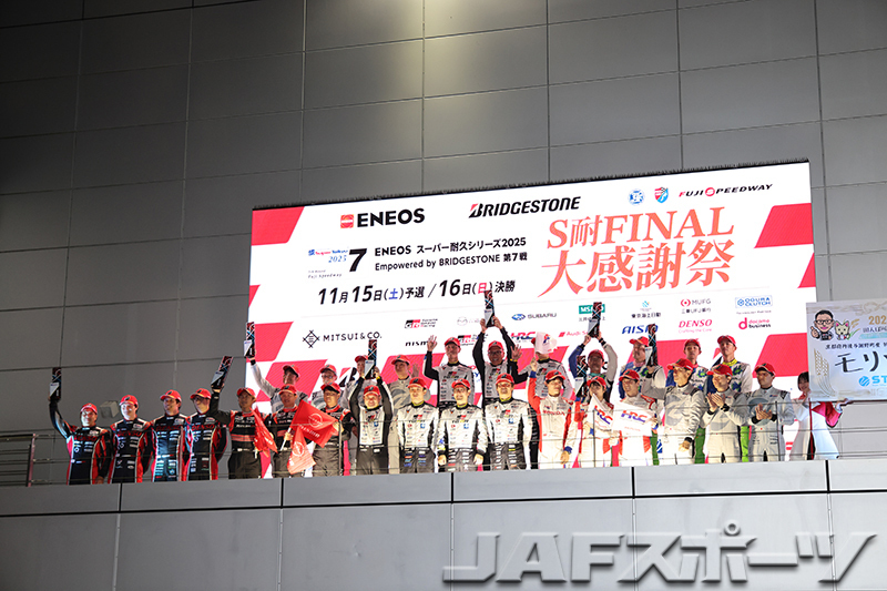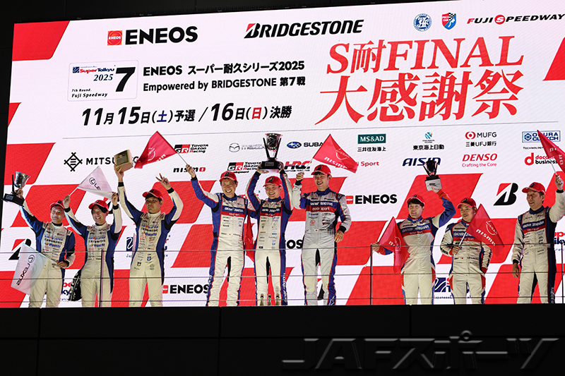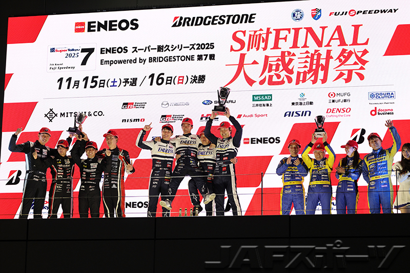 スーパー耐久シリーズ2025 第7戦(最終戦)は、11月14~16日に富士スピードウェイにおいて4時間レースとして開催。2日間で4万人を集めた。今回は全9クラスに57台の車両がエントリーし、ST-Xクラスのseven × seven PORSCHE GT3R(BANKCY/渡会太一/藤波清斗組)が総合優勝で今季クラス4勝目を挙げて逆転チャンピオンとなった。また既にタイトルが確定していたST-ZとST-5F、ST-Rクラス以外のすべてのクラスでチャンピオンが確定した。